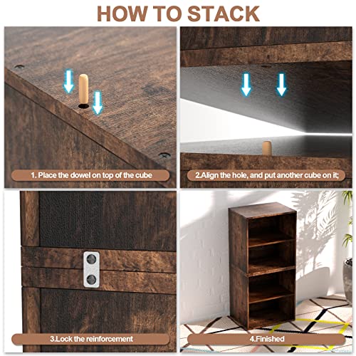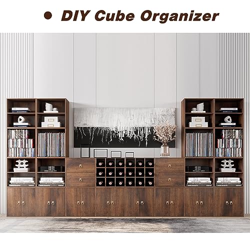 TQVAI - تي كيو في اي منظم تخزين مكعب تصنعه بنفسك، رف خشبي مكعب، خزانة كتب صغيرة، رف كتب خشبي، صناديق تخزين قابلة للتكديس، مكعبات تسجيل الفينيل، 16 انش عرض × 12 انش عمق × 15 انش ارتفاع، مكعب عالمي