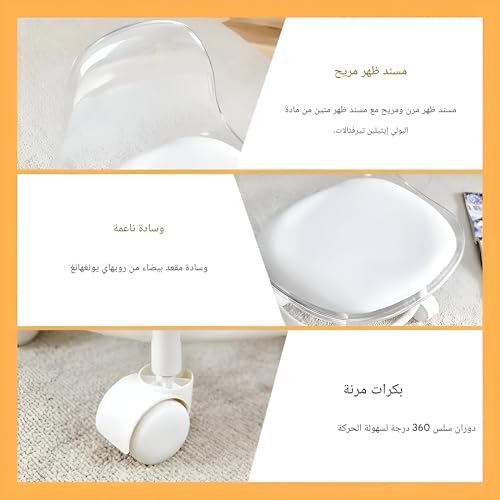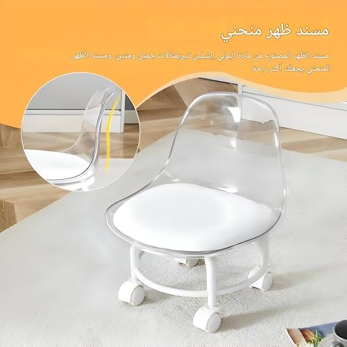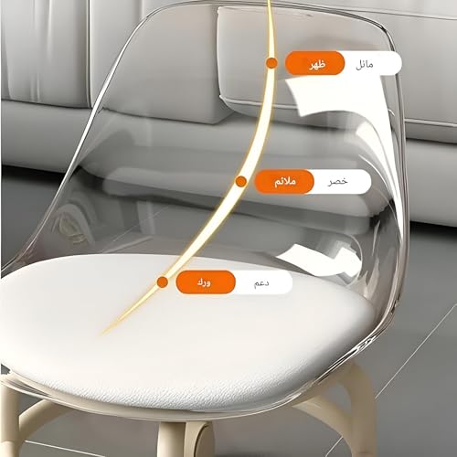 - مع مسند ظهر أكريليك شفاف، يوفر هذا المقعد دعمًا خفيًا لأسفل الظهر مع إضافة جمالية عصرية وأنيقة، مما يجعله مناسبًا للمساحات المتنوعة مثل المطابخ أو صالونات التجميل أو محطات العمل، ويمزج بين الأناقة والوظيفة.