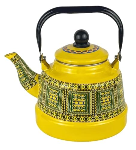Generic - غلاية شاي عربية تقليدية، إبريق معدني، أصفر بنقشة هندسية خضراء