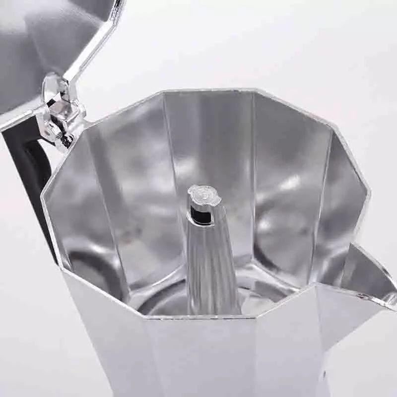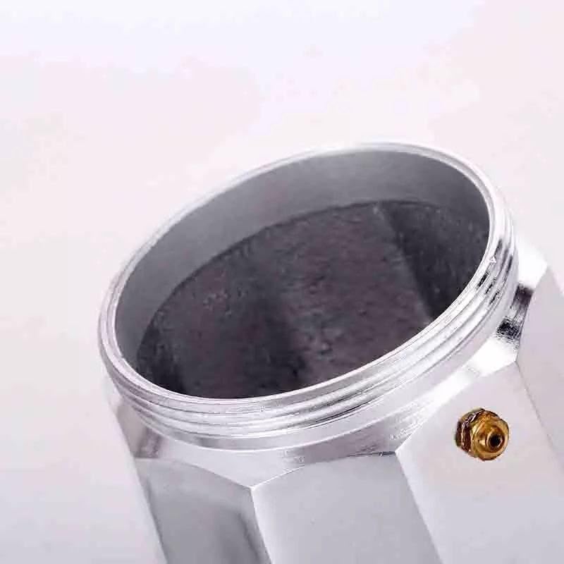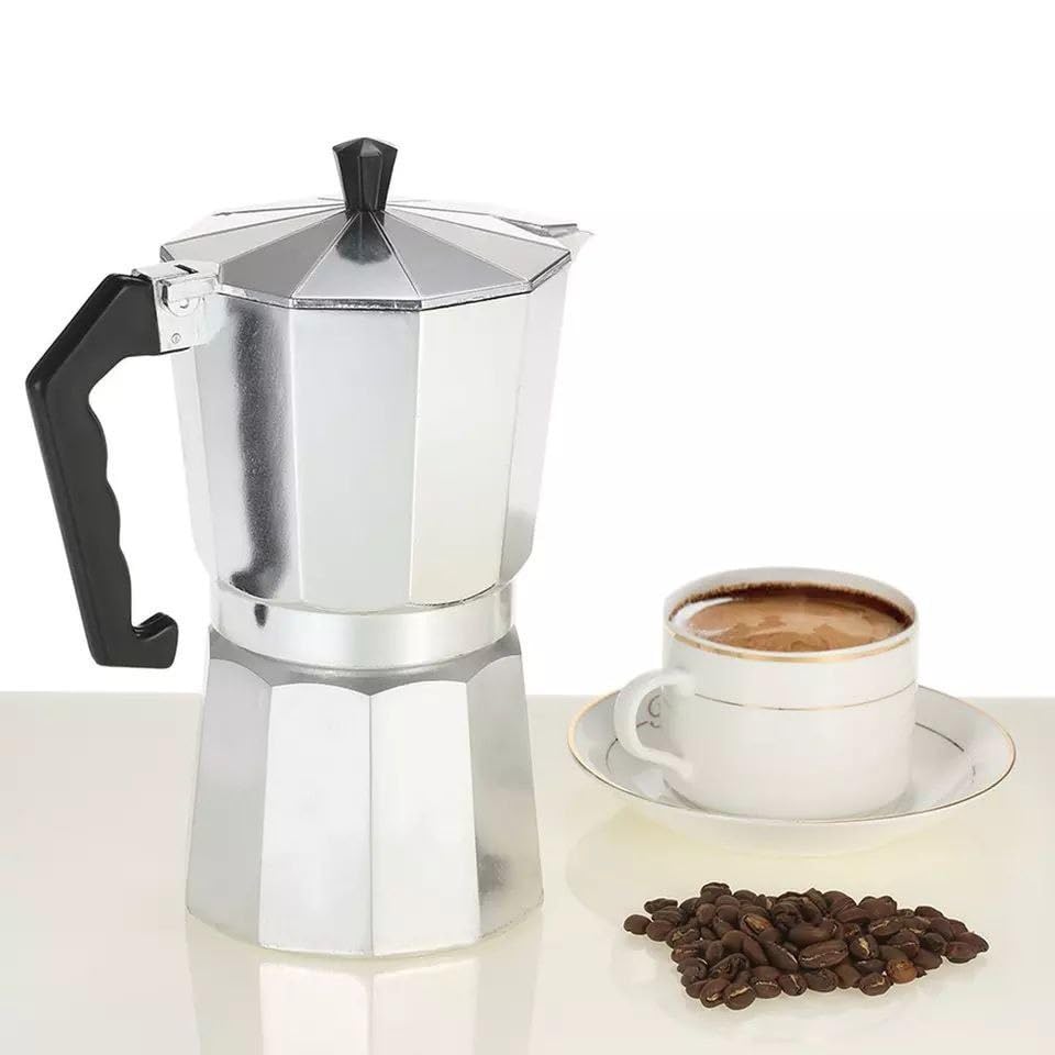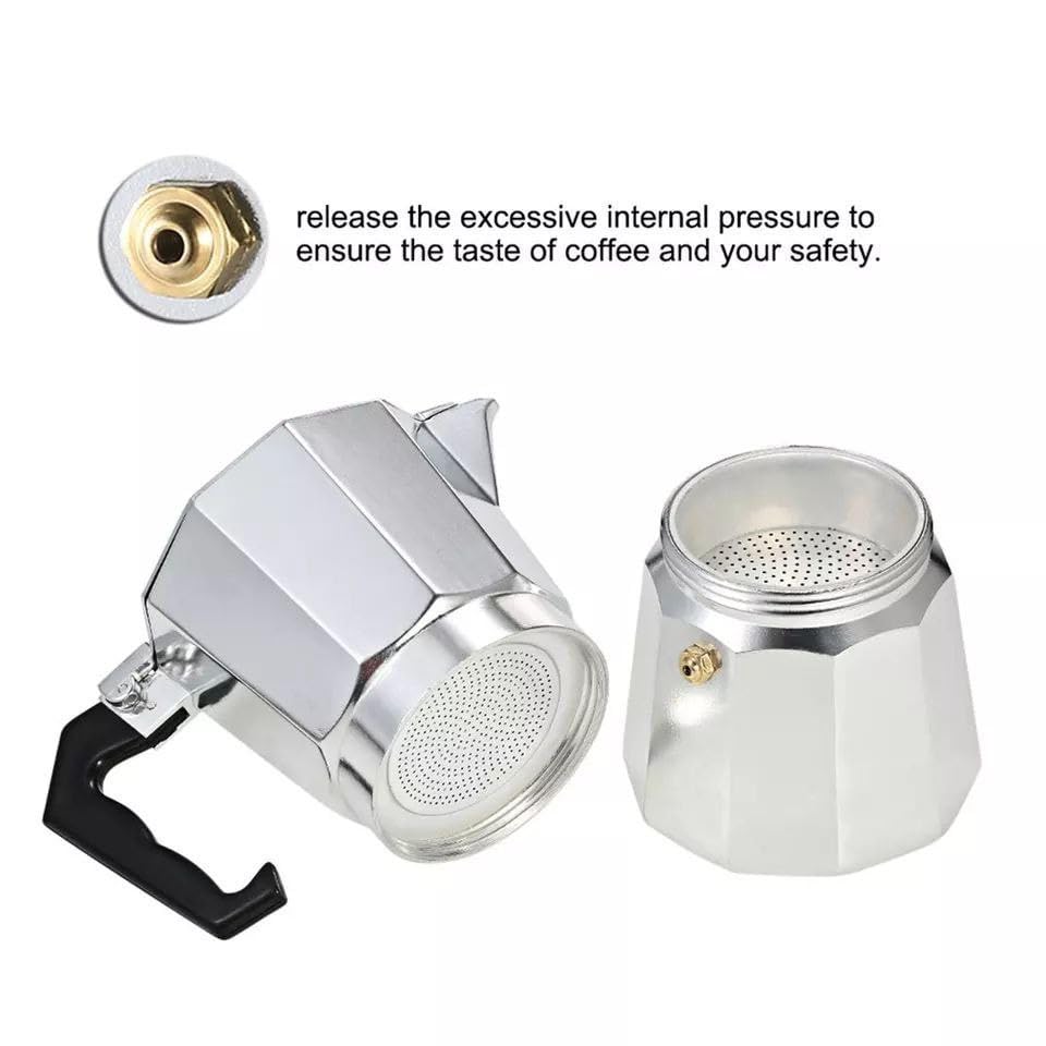 - تصميم كلاسيكي: صانعة القهوة الإيطالية المصنوعة من الألومنيوم بتصميم ثماني الأضلاع مع مقبض أسود مريح