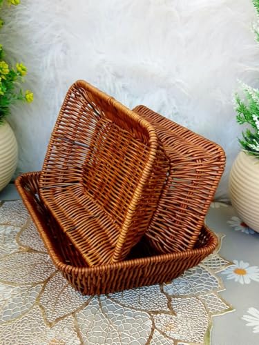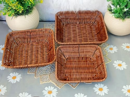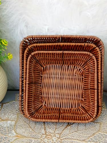 Generic - طقم عياشة خوص مربعة تقليدية، سلة خبز وفاكهة للسفرة، متعددة الاستخدامات للديكور والتنظيم المنزلي