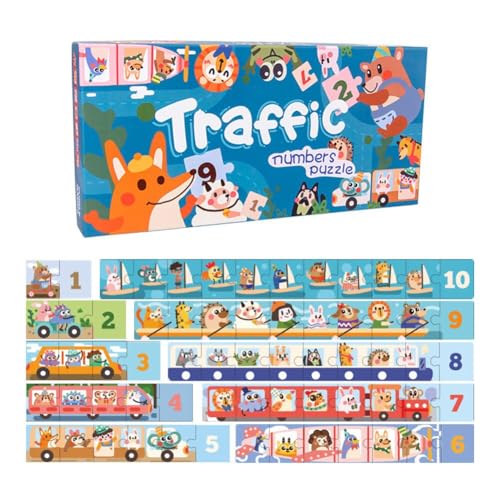 Generic - لعبة احجية ارقام حركة المرور، احجية حيوانات ملونة مع 10 قطع مرقمة