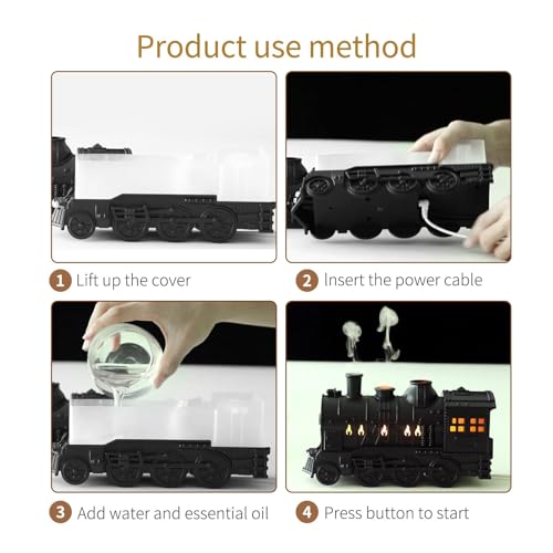 Dpofirs - موزع زيوت عطرية على شكل قطار يعمل كجهاز ترطيب هواء بتصميم قاطرة مع جهاز تحكم عن بعد ووضعين للإضاءة رائع لغرفة النوم والمكتب وسطح المكتب، سعة 300 مل