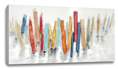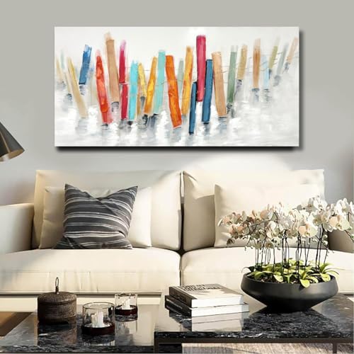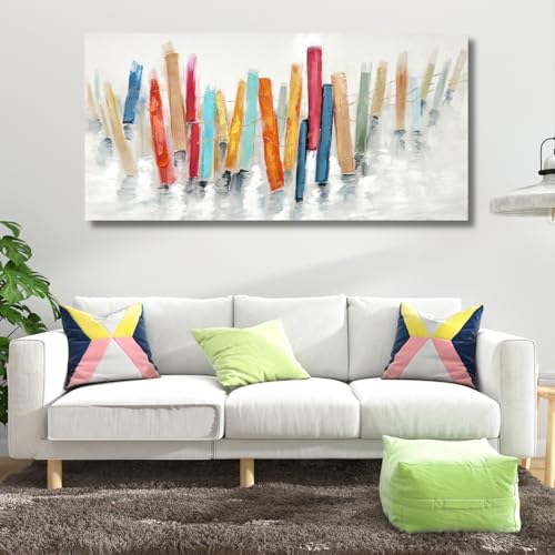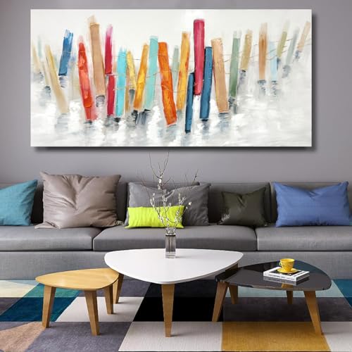 TRAIN2 ART - لوحة فنية جدارية تجريدية لغرفة المعيشة، لوحات ديكور جدارية حديثة مرسومة باليد كبيرة لغرفة المعيشة والنوم وديكور المكتب 50.8 × 101.6 سم من ترين 2 ارت