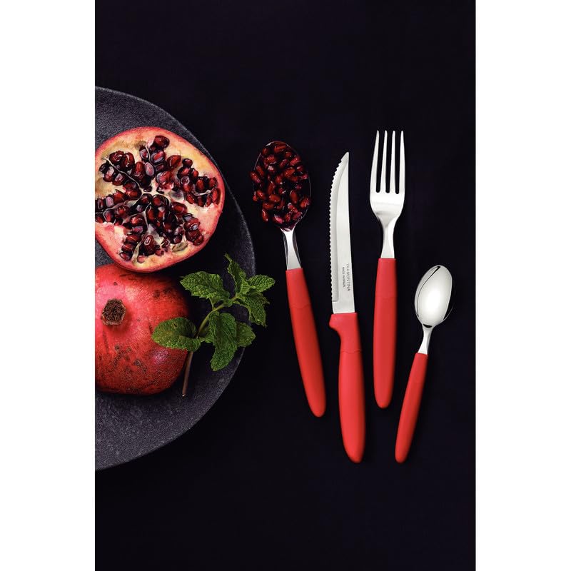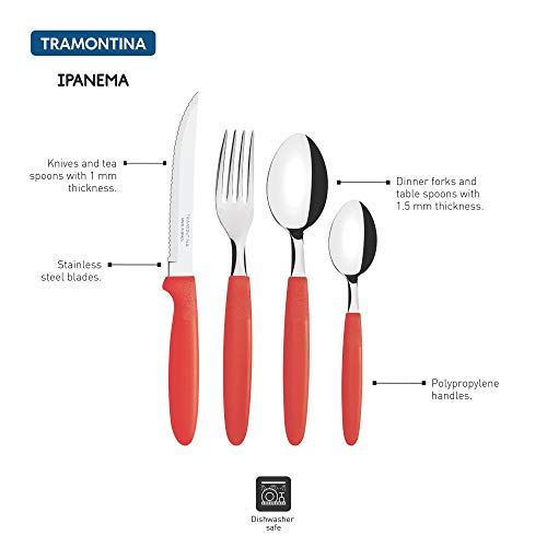 Tramontina - مجموعة أدوات مائدة ايبانيما، بشفرات من الفولاذ المقاوم للصدأ، ومقابض من البولي بروبيلين، 24 قطعة لتناول الطعام والاستخدام اليومي، متينة وآمنة للاستخدام في غسالة الأطباق من ترامونتينا (أحمر)