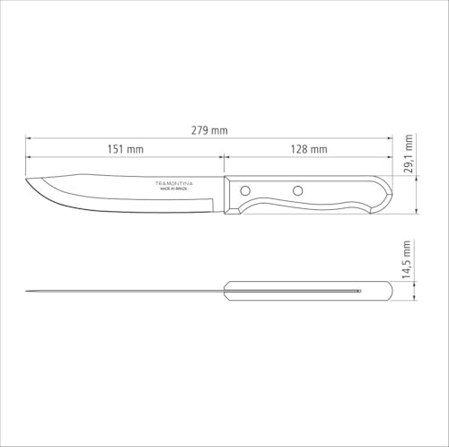- تتميز سكينة ترامونتينا بأنها مقاومة للصدأ والبقع والتآكل، وتوفر موثوقية متميزة في الاستخدام لزمن طويل، حتى مع الاستخدام المكثف والغسيل المنتظم.