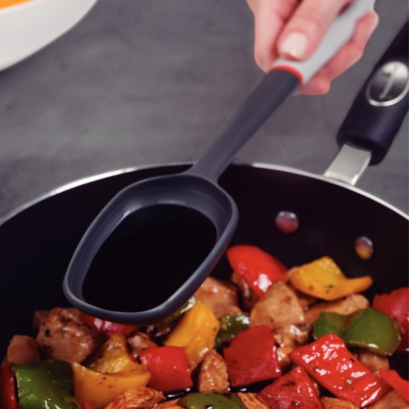 - معلقة تقديم مصنوعة من النايلون المقاوم للحرارة مع مقبض بلاستيك.