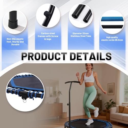 Anwick - ترامبولين، ترامبولين محمول قابل للطي في المنزل، ترامبولين صغير للتمرين للاطفال والكبار، 40 انش، اقصى حمولة 330 باوند (ازرق)