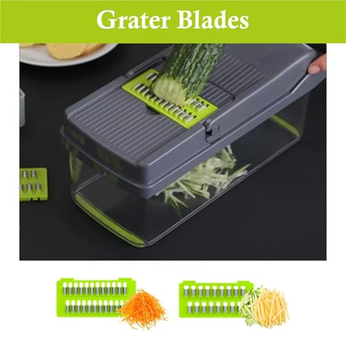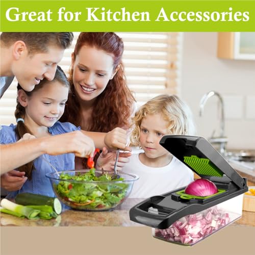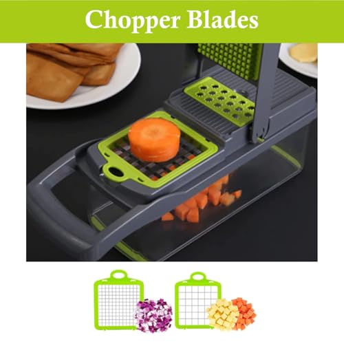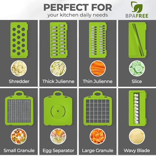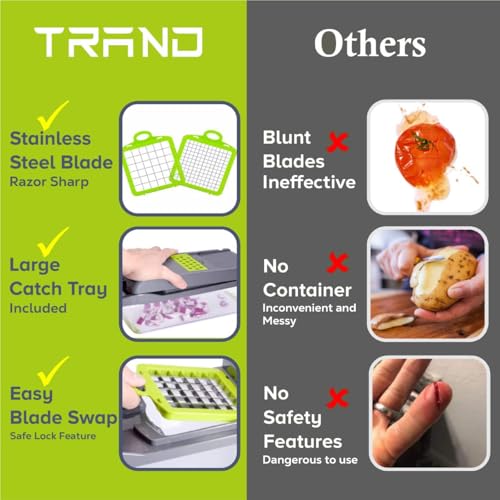 TRAND - أداة تقطيع خضروات مندولين 15 في 1، قطاعة طعام وشرائح البصل من تراند، يدوية صغيرة متعددة الوظائف، مفرمة شرائح للبصل والخضروات والثوم والبطاطس والسلطة مع مبشرة للجبن من مجموعة أدوات المطبخ