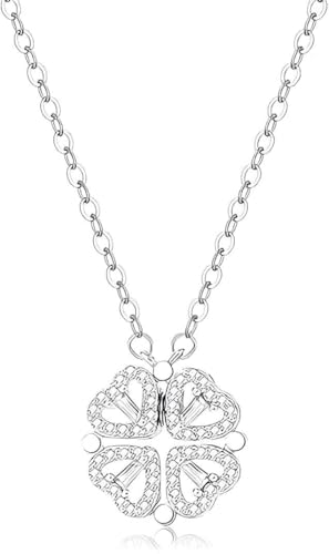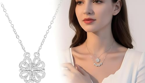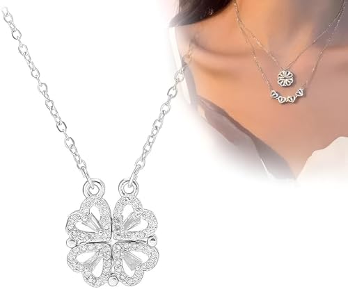 Generic - قلادة قابلة للتحويل - اربعة قلوب متشابكة تصبح اوراق البرسيم، لمسة نهائية من الستانلس ستيل المصقول، هدية انيقة لها في الايام الخاصة