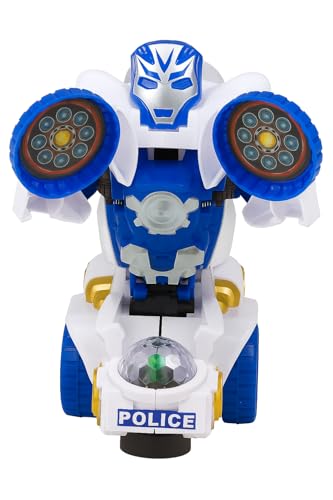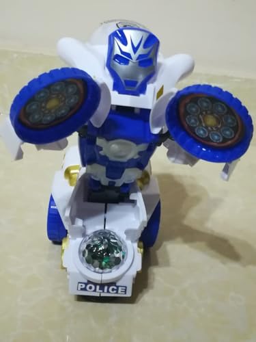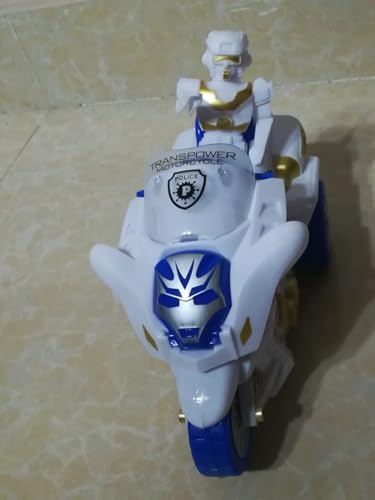 Generic - لعبة روبوت موتوسيكل كهربائية من ترانسباور، 22 سم، مع أضواء وموسيقى، تحول اوتوماتيك، أبيض وأزرق