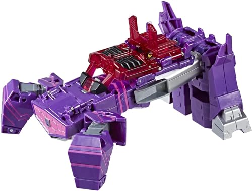 - ترانزفورمرز شخصية سايبرفيرس: لعبة روبوت شوك ويف باللون الأرجواني مستوحى من عالم ديسيبتيكون الملتوي من الرسوم المتحركة ترانسفورمرز سايبرفيرس، كما يظهر في كارتون نتورك ويوتيوب