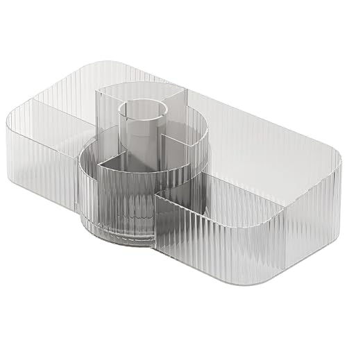 - تصميم ذو سعة كبيرة يحمل أحمر الشفاه وكريم الأساس والفرش ولوحات الألوان ومنتجات العناية بالبشرة كلها في وحدة واحدة أنيقة، مما يزيل الفوضى ويبسط روتينك اليومي.