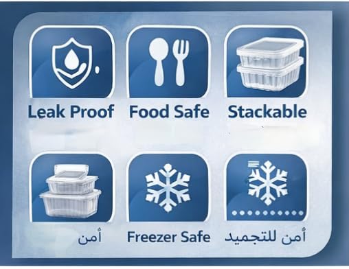 - تصميم شفاف يوضح محتوى الأكل: البلاستيك الشفاف يساعد في رؤية الأكل بسرعة ويجعله نظيف وسهل التنظيم.