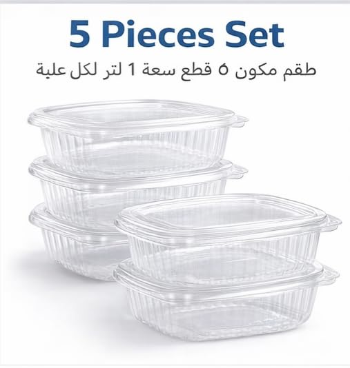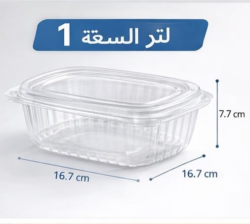 - سعة 1 لتر عملية: كل علبة تكفي وجبة كاملة بسهولة، مناسبة للأكل الجاهز، والتيك أواي، وتجهيز الوجبات، أو حفظ الأكل دون ازدحام.