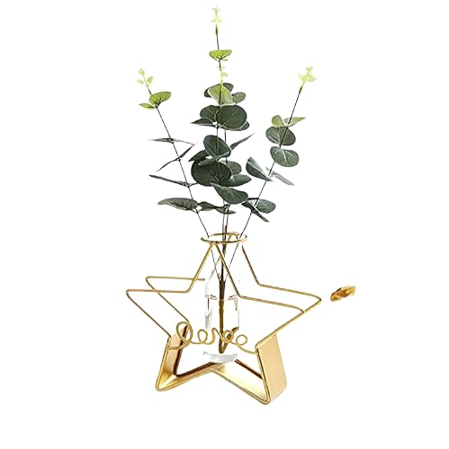 Generic - مزهرية زجاجية شفافة للزراعة المائية - تصميم انبوبي مثبت باللون الذهبي للعرض على الحائط، حامل نباتات انيق للمنزل والمقهى