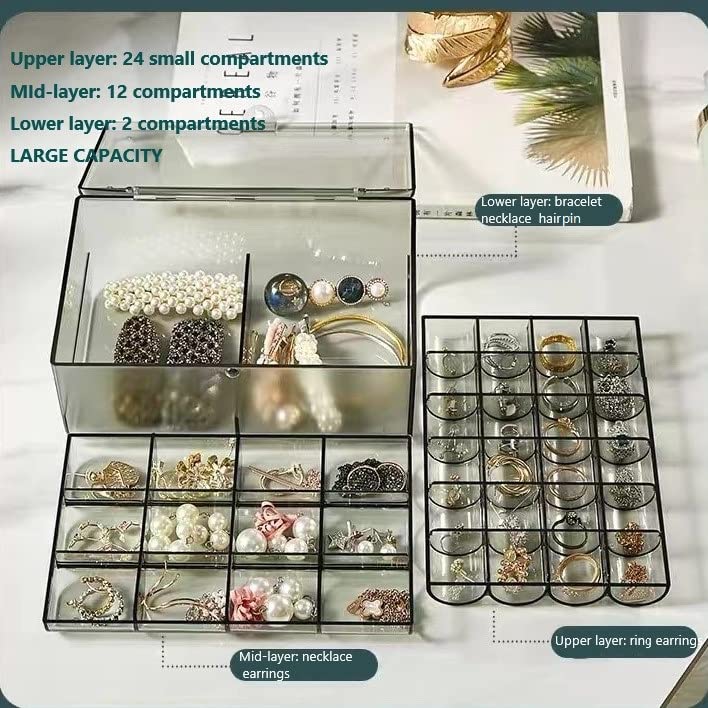 - ♥علبة مجوهرات شفافة: تتميز علبة المجوهرات هذه بتصميم شفاف متعدد الطبقات مع صينية قابلة للإزالة. يمكن لعلبة المجوهرات استيعاب الحلقان والأساور والسلاسل والخواتم والبروشات ومستلزمات الأظافر. التصميم الشفاف يجعل قطع الزينة مرئية بوضوح.