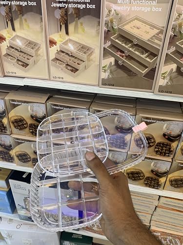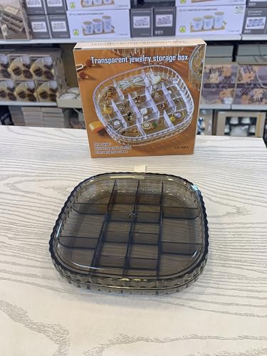 Generic - صندوق تخزين شفاف للمجوهرات، تصميم شبكي منظم، شكل مربع، متعدد الأقسام