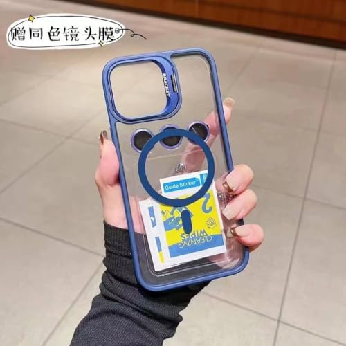 ecosystem - جراب حماية شفاف مغناطيسي بواقي لعدسات الكاميرا وحامل حلقي ويدعم شاحن ماج سيف لموبايل آيفون 15 برو ماكس، أزرق غامق