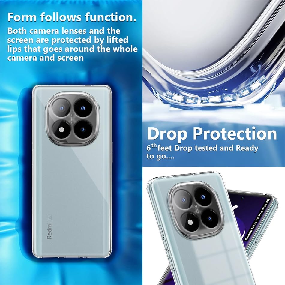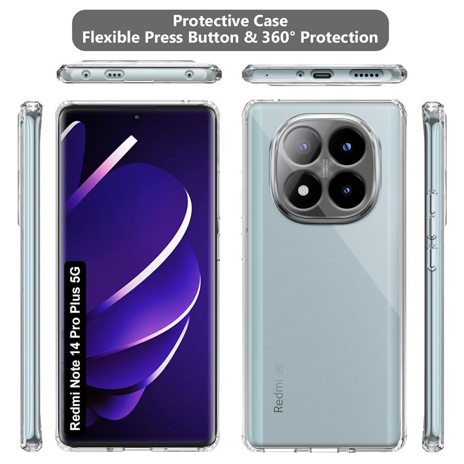 ELMO3EZZ - جراب حماية خلفي شفاف مقاوم للصدمات لموبايل ريدمي نوت 14 برو بلس شبكة الجيل الخامس 5G مزود بحواف مرتفعة لحماية الكاميرا والشاشة