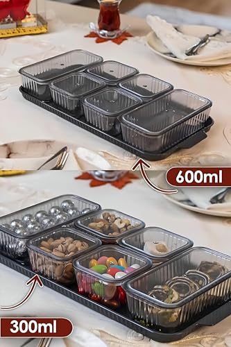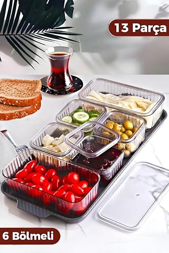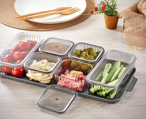 Generic - صينية الوجبات الخفيفة بأوعية شفافة - قدم وجباتك الخفيفة المفضلة بأناقة مع صينية التقديم المقسمة لدينا، والتي تتضمن 6 أوعية شفافة وغطاء، مثالية للحفلات والتجمعات العائلية.