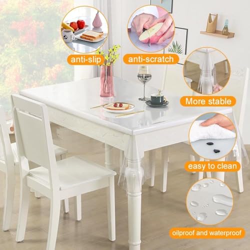 - ❃ مفرش طاولة شفاف للحماية: مصنوع من بلاستيك بي في سي عالي الجودة، مقاوم للماء ومضاد للقاذورات، متين وقابل لإعادة الاستخدام. غطاء طاولة جديد صديق للبيئة وخالي من مادة البيسفينول أ وغير سام وعديم الرائحة. يمكنه حماية سطح الطاولة بشكل مثالي من الخدوش وحماية طاولتك من الخدوش ومن جميع السوائل المنسكبة مما يطيل من عمر أثاثك.