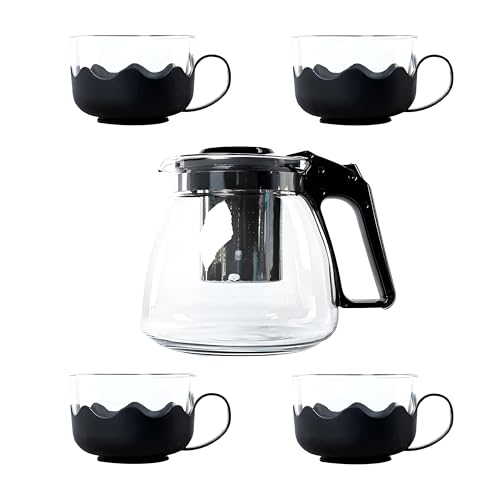 Generic - ابريق شاي شفاف - ابريق زجاجي انيق سعة 1 لتر مع مصفاة من الستانلس ستيل، مقبض مقاوم للحرارة، قاعدة بلاستيكية متينة، مصمم لتقديم اربعة اكواب من الشاي يوميا.