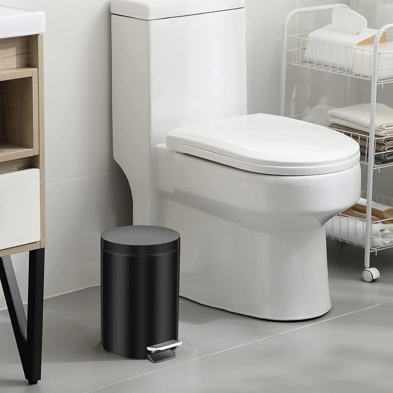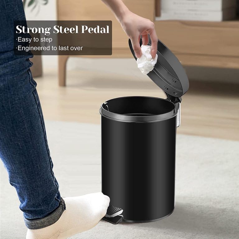 Generic - سلة مهملات 40 لتر بلون أسود من الفولاذ المقاوم للصدأ بلمسة نهائية عاكسة