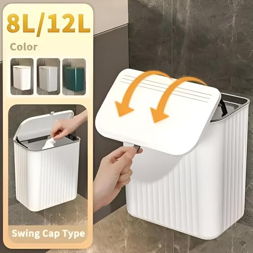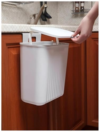 Generic - سلة مهملات، حاوية نفايات بيضاء بغطاء قابل للتعديل، صندوق قمامة عملي للمطبخ أو المكتب أو الحمام، حل لإدارة النفايات بمظهر حديث وسعة جيدة