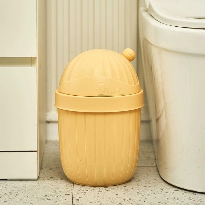 Generic - سلة قمامة بغطاء للورق والنفايات للمطبخ والمكتب والحمام (أصفر)
