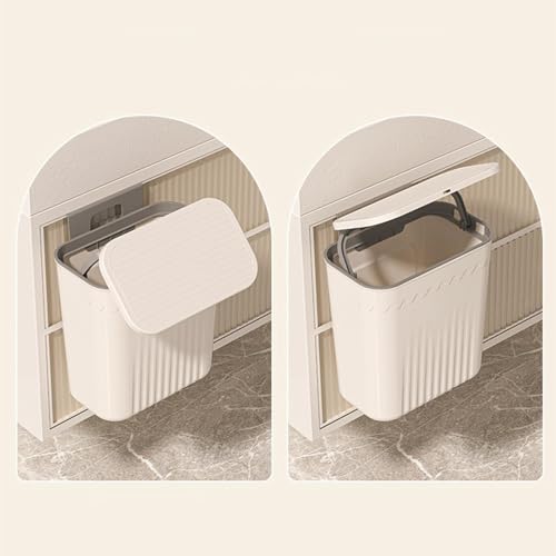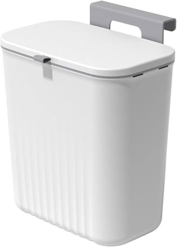 Generic - سلة قمامة للتعليق على الأبواب والخزائن بسعة صغيرة وغطاء متحرك وسهلة التنظيف مع لاصق مزدوج أبيض ورمادي Kitchen Bin