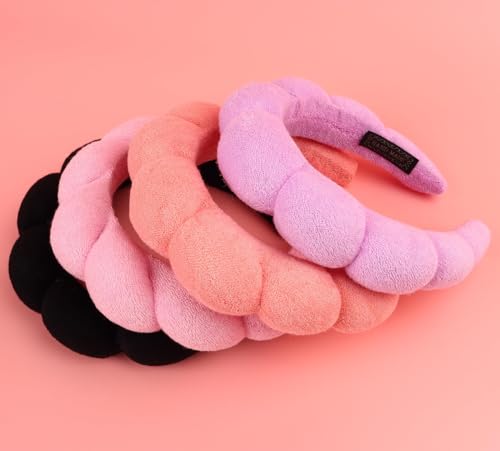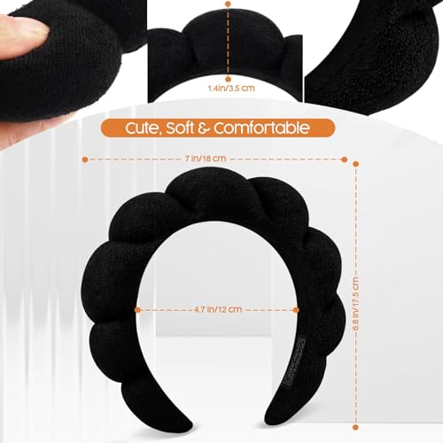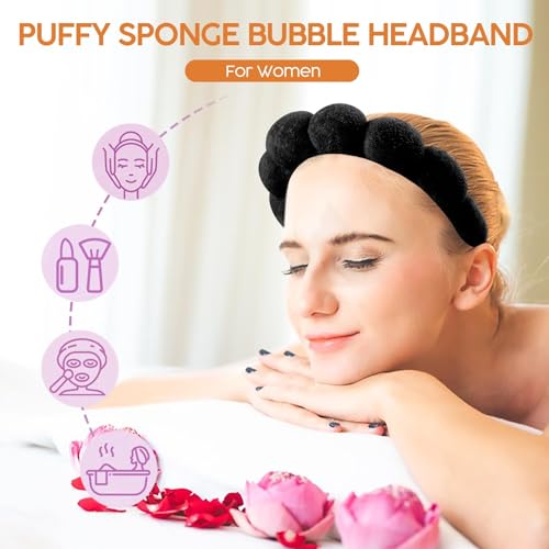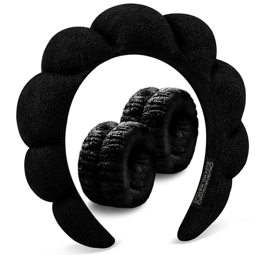 TRASSLE - شريط راس سبا لغسل الوجه من تراسل، عصابات راس للمكياج والعناية بالبشرة للنساء، عصابات راس مكياج فقاعية، هدايا للفتيات المراهقات، شريط شعر منتفخ من قماش تيري اكسسوار شعر جاهز (اسود)