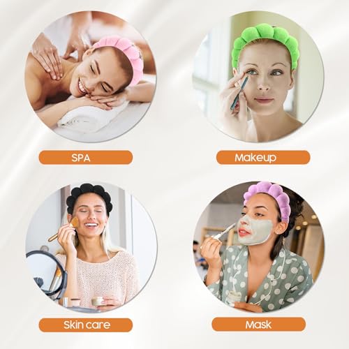 - شريط رأس منتفخ مقاوم للرذاذ: يتميز شريط رأس السبا للنساء والفتيات بقلب بلاستيكي قوي وغطاء من قماش تيري ناعم ملفوف على شكل بتلات للمساعدة في امتصاص تلك البقع الصغيرة الخاطئة التي تحدث عند غسل وجهك.