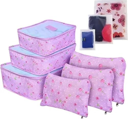 - مجموعة ضخمة من المقاسات: يتكون الطقم من 6 قطع متنوعة الأحجام، مما يمنحكِ المرونة الكافية لتنظيم كل شيء بدءاً من الأمتعة الكبيرة وحتى المتعلقات الشخصية الصغيرة بانتظام.