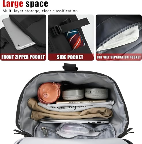 Generic - شنطة ظهر للسفر - شنطة دفل سوداء 35 لتر مع جيب للحذاء، قماش مقاوم للماء، جيوب داخلية متعددة، تصميم للجنسين، مثالية لليوغا والسباحة والمشي لمسافات طويلة والتخييم وعطلات نهاية الاسبوع