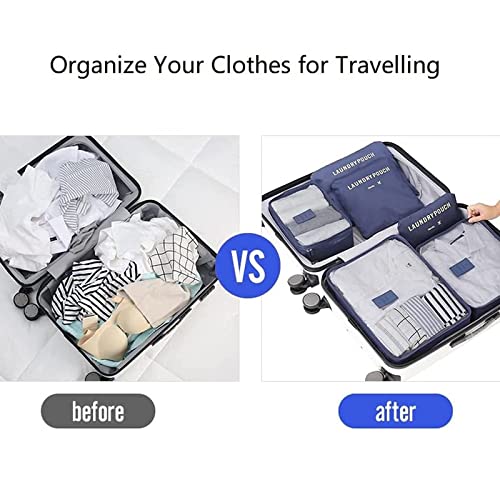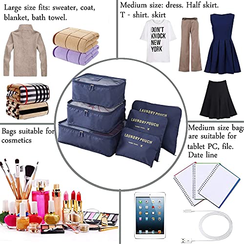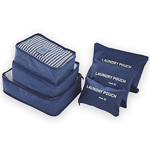 None-branded - شنط سفر من 6 قطع تخزين للسفر عبوات فرز الملابس متعددة الوظائف مجموعة ملابس شنطة ضغط للتغليف منظمة للملابس ازرق داكن نون-براند