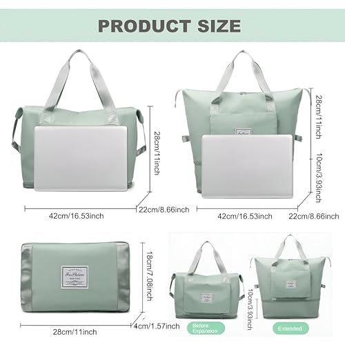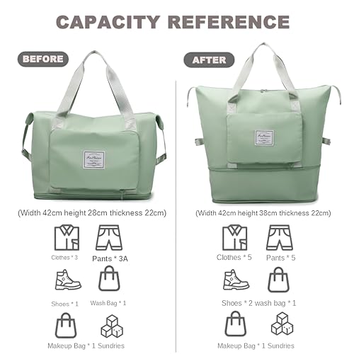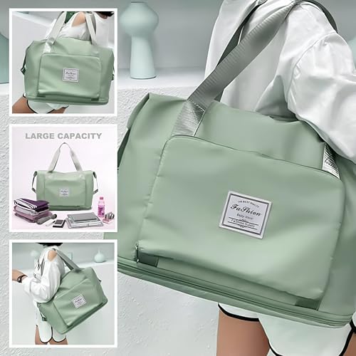 Generic - شنطة سفر - شنطة نسائية كبيرة قابلة للطي لتنظيم الامتعة والمعدات الرياضية، تتميز باقسام واسعة وتصميم خفيف الوزن ومواد متينة للسفر المريح (اخضر فاتح)