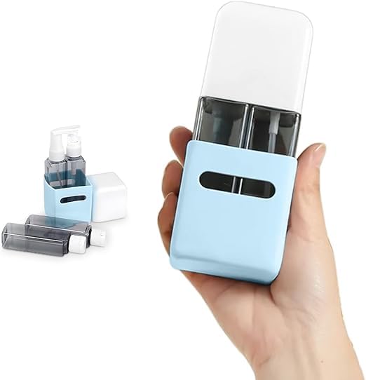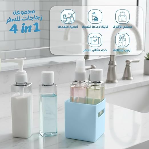 Generic - موزع زجاجات سفر 4 في 1 - موزع سفر قابل لاعادة الملء مانع للتسرب، محمول لغسول الجسم والبلسم والكريم الواقي من الشمس واللوشن (ازرق)