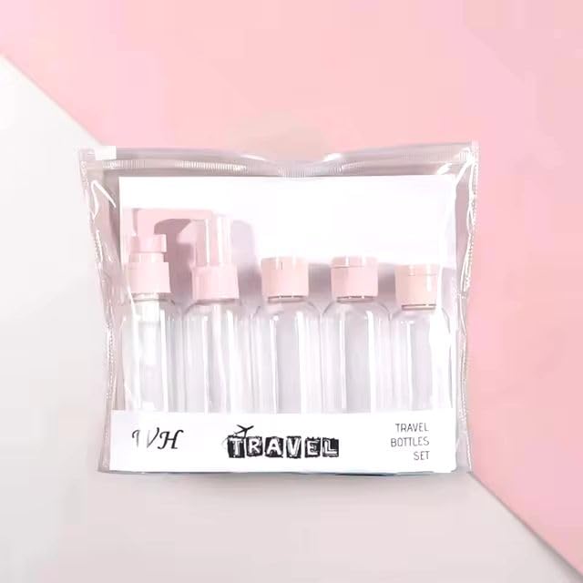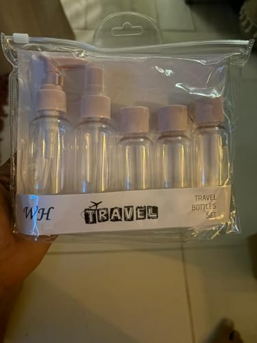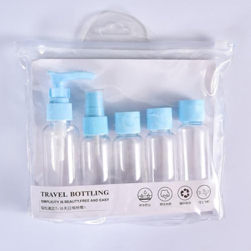 Generic - مجموعة زجاجات سفر من 5 قطع، زجاجات وحاويات السفر، زجاجات بلاستيك صغيرة فارغة قابلة لإعادة الملء/ مضخة/ بخاخ/ زجاجات ضغط لمستلزمات السفر ومستحضرات التجميل مع شنطة تخزين