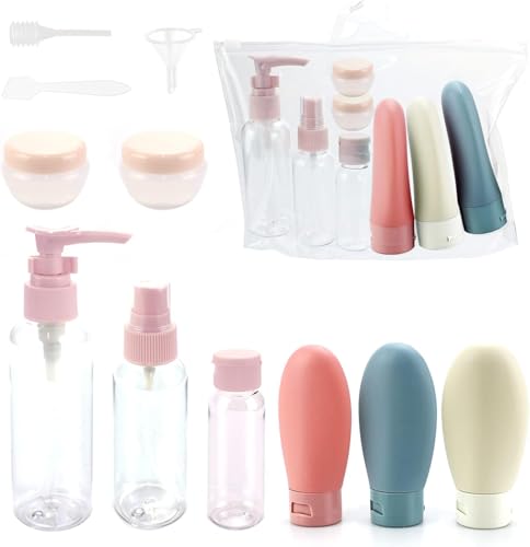 Generic - مجموعة من زجاجات السفر زجاجات سفر لمستحضرات التجميل مجموعة من 11 قطعة المانعة للتسرب وقابلة لاعادة الملء بلاستيك فارغة بحجم مناسب للسفر للشامبو والبلسم ومستحضرات وجل الاستحمام متعدد الالوان