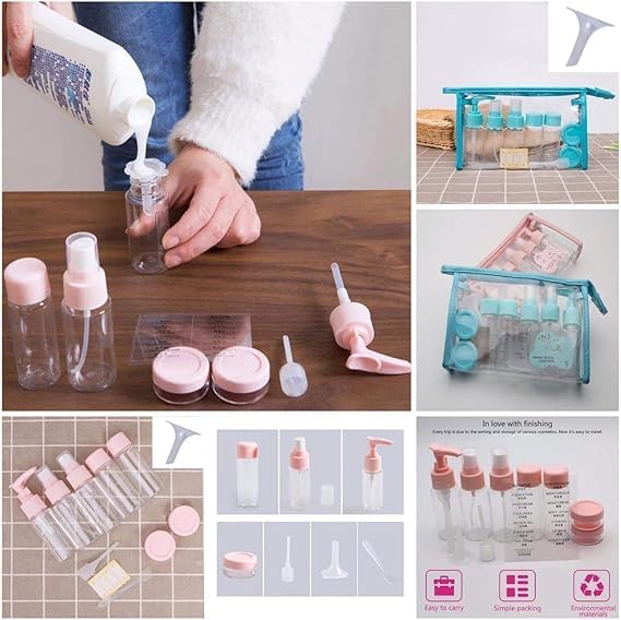 - مجموعة متكاملة: تتضمن 5 زجاجات بلاستيكية شفافة مع أغطية أمان زرقاء، مثالية للسفر والاستخدام اليومي