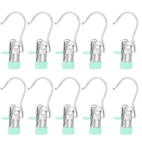 Generic - شماعة ملابس للسفر - مجموعة محمولة من الستانلس ستيل مكونة من 10 قطع تتضمن خطافات غسيل ومشابك احذية ودبابيس ملابس، مثالية لتعليق الملابس والاحذية والاكسسوارات أثناء السفر وتوفير المساحة.