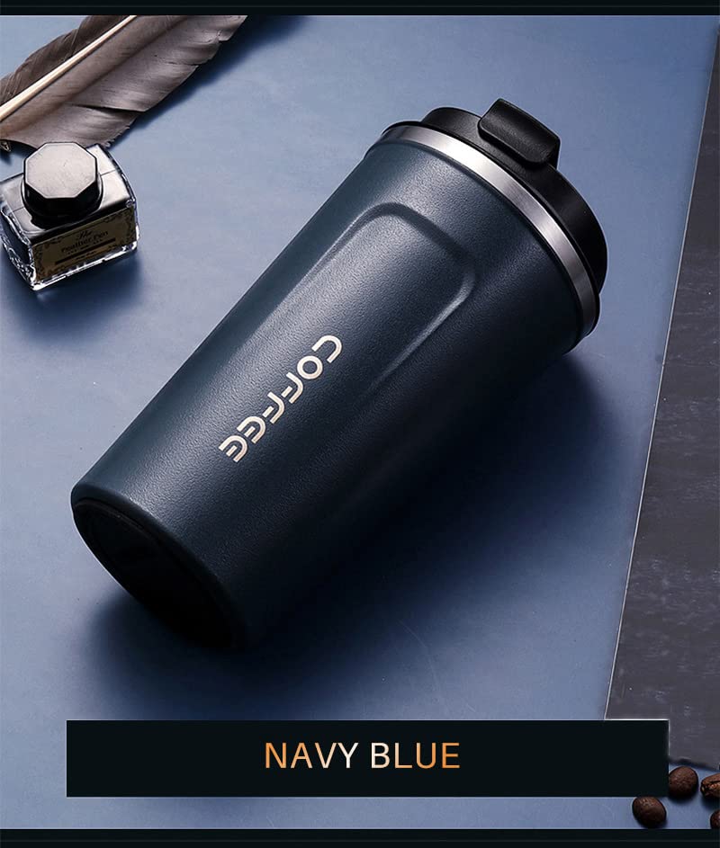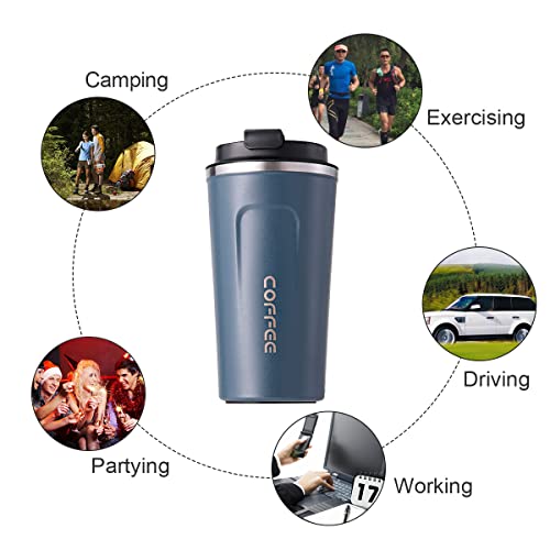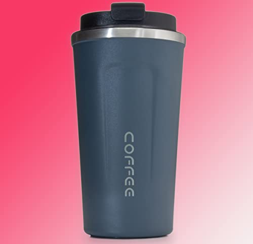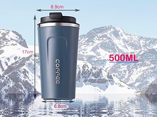Generic - كوب قهوة للسفر، كوب قهوة من الستانلس ستيل، كوب قهوة معزول حراريا للسيارة، 500 مل، أزرق