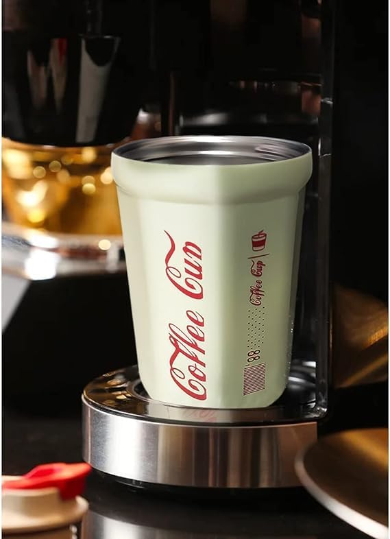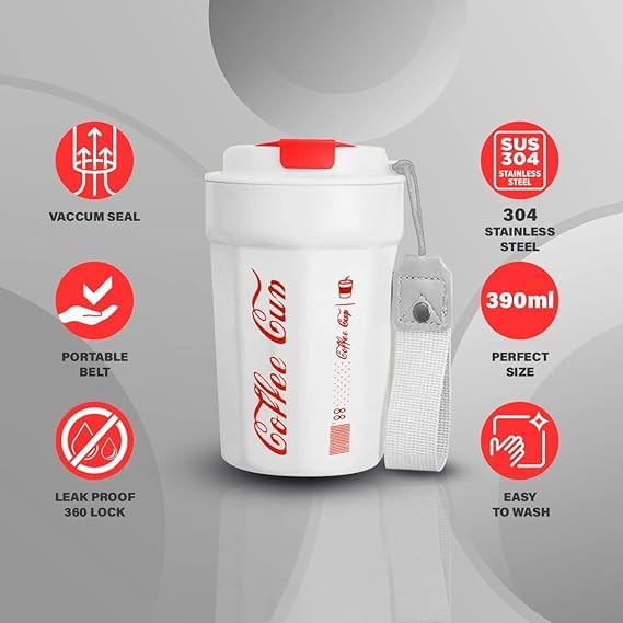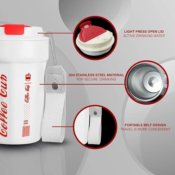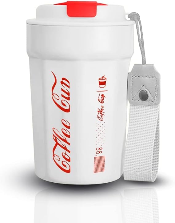 Generic - مج قهوة للسفر مع غطاء مانع للتسرب من الستانلس ستيل 304، كوب ثلج ساخن وبارد بجدار مزدوج معزول بتفريغ الهواء، أبيض (380 مل)