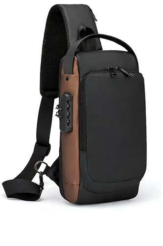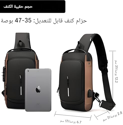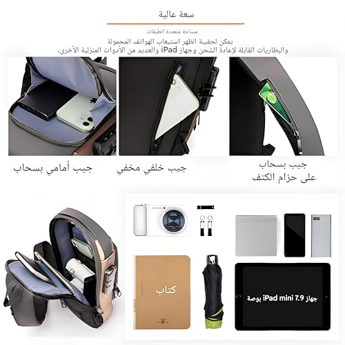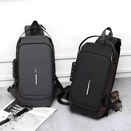 Generic - رفيق السفر - شنطة مقاومة للمياه مع منفذ شحن USB، وحزام صدر قابل للتعديل، وقفل بكلمة مرور سرية، وجيوب داخلية متعددة، مثالية للمغامرات اليومية والتنقل والرحلات القصيرة