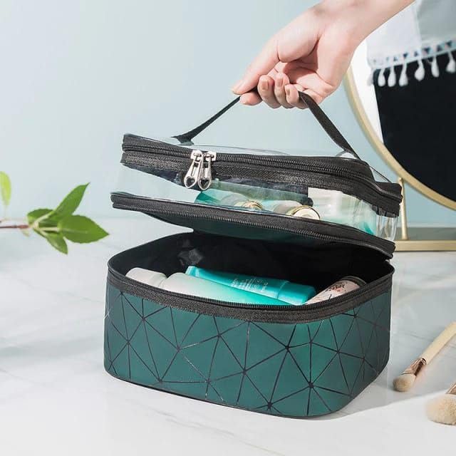 Generic - حقيبة مستحضرات تجميل للسفر للنساء بطبقة مزدوجة، حقيبة مستحضرات تجميل مقاومة للماء. (ROSE)