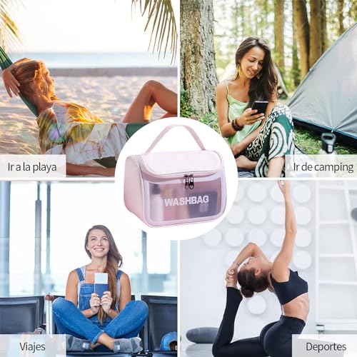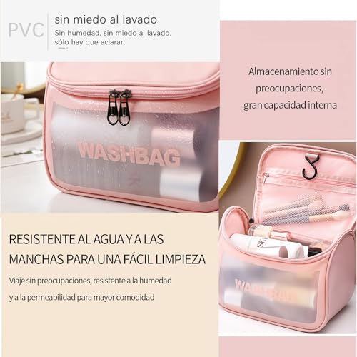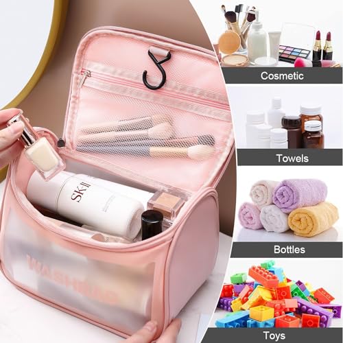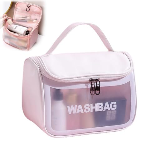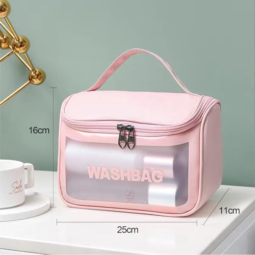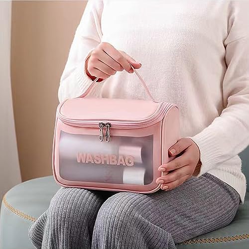 ZHEYU - شنطة مستحضرات تجميل للسفر محمولة مقاومة للماء بسعة كبيرة مصنوعة من بلاستيك PVC مناسبة لتخزين التجميل والسفر والعمل بينك زهري