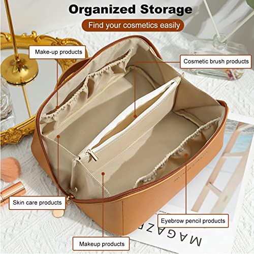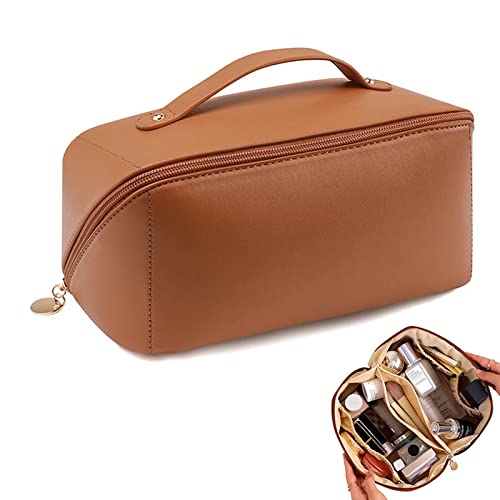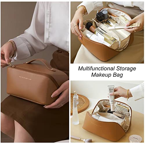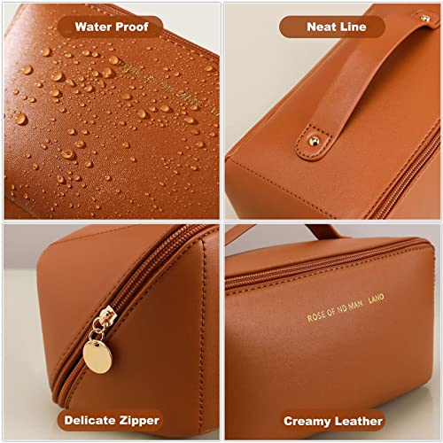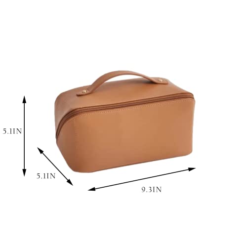 HXIZMY - شنطة مستحضرات تجميل للسفر مكياج محمولة بسعة تخزين كبيرة منظم مقاوم للماء من الجلد متعددة الوظائف لادوات الزينة والمكياج بني بولي يوريثين HXIZMY