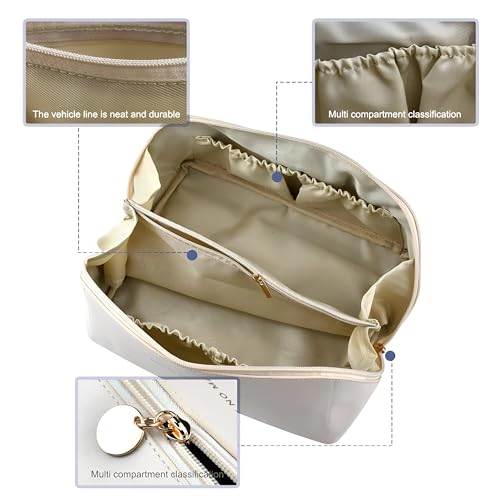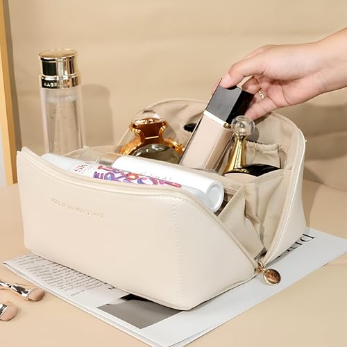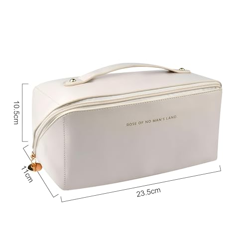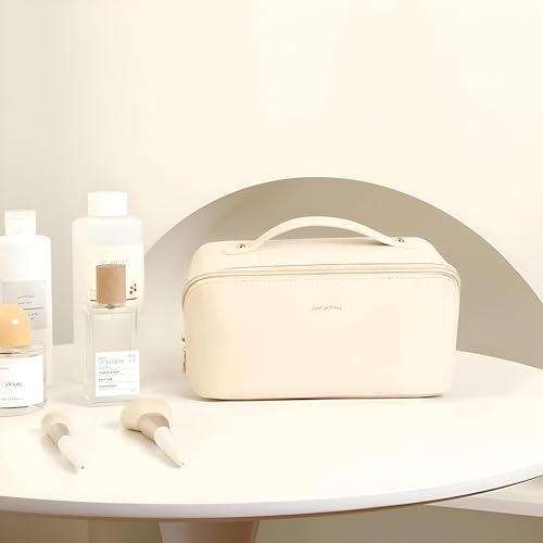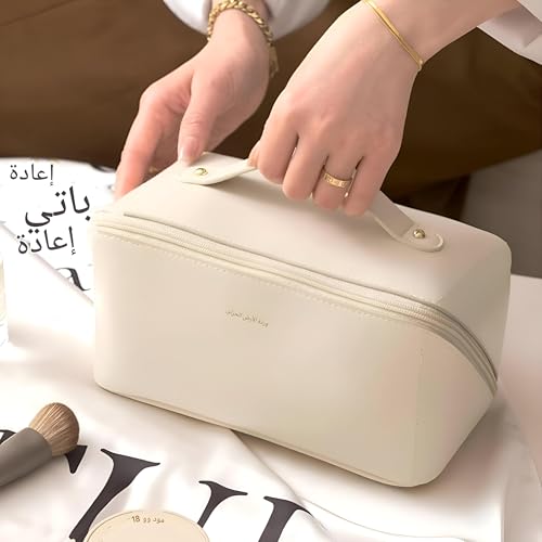 Generic - شنطة مستحضرات تجميل للسفر - شنطة مكياج جلدية ذات سعة كبيرة تتميز بمادة مقاومة للماء وسهلة الحمل ومقصورات متعددة للتخزين الفعال (ابيض)