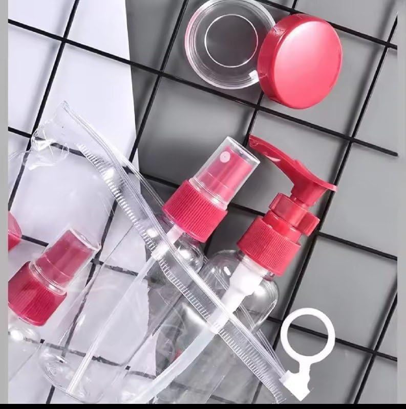 - مجموعة متكاملة من 6 عبوات متنوعة: يتضمن الطقم تشكيلة شاملة تلبي جميع الاحتياجات، بما في ذلك زجاجات مزودة برؤوس ضخ (للوشن أو الشامبو)، زجاجات برؤوس بخاخ (للعطور أو التونر)، وعلب صغيرة بأغطية لولبية (للكريمات أو الجل)، مما يوفر خيارات تخزين متعددة.